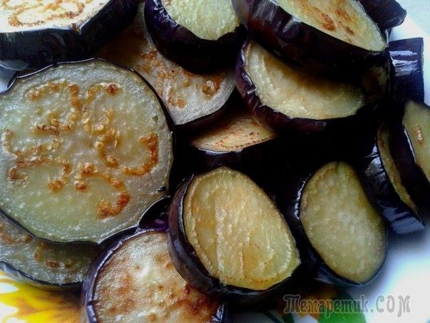 Баклажаны нарезать кружками и слегка обжарить на растительном масле. Масла не жалейте, сколько возьмёт баклажан, оно потом при варке уйдёт в маринад.