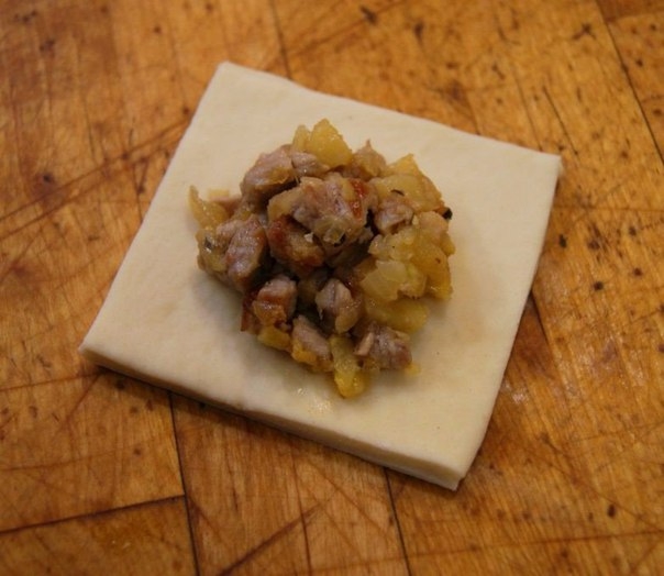 Яблоки обжариваем до консистенции, когда они чуть размягчились, дали сок и обволокли начинку. Солим-перчим по вкусу.