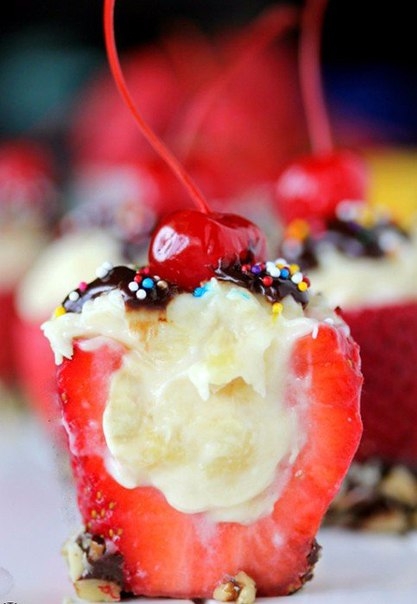 Клубника с банановым сплитом десерт, еда, клубника, своими руками