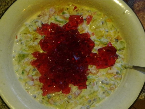 галаретку разбавляют 1 п- 200мл воды , ставим в холодильник , чтобы застыла.
