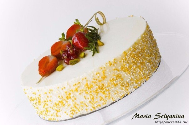 Снять кольцо с застывшего торта. Остатки желе разогреть. Поставить торт на решетку, полить оставшимся желе, как глазурью. Украсить по желанию свежей клубникой, пряными травами и т.д.