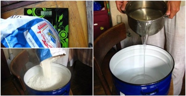 2. Берем 0.5 литра воды на каждый 1 кг муки и выливаем в большую кастрюлю.