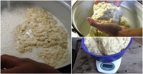 12. Взвешиваем. Промытого теста должен выйти не менее чем 0.4 массы изначального количества муки.
