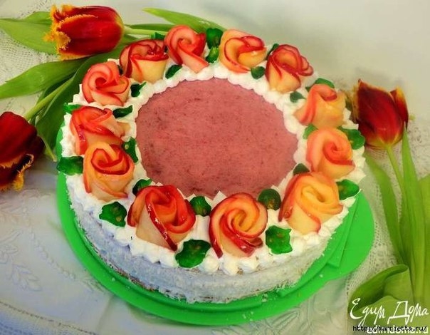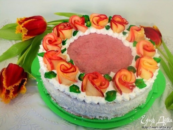 ТОРТ С ЯБЛОЧНО-МАЛИНОВЫМ СУФЛЕ И С РОЗОЧКАМИ ИЗ ЯБЛОК