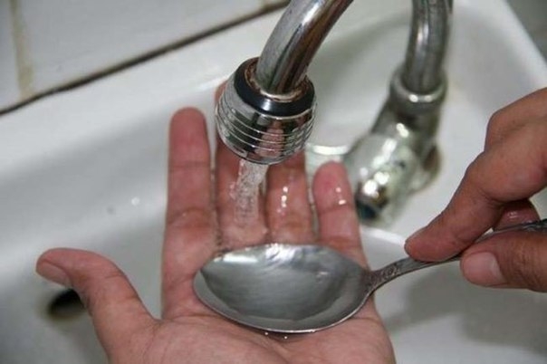 Чтобы избавиться от запаха чеснока на руках, потрите их о ложку из нержавеющей стали.