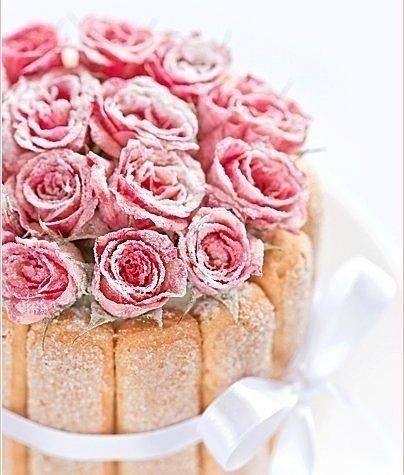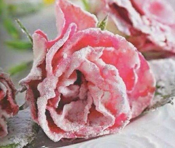 Такими засахаренными розами сегодня довольно часто украшают торты и другие десерты.