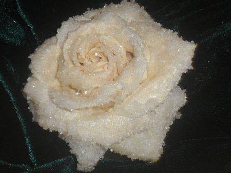 3. Посыпать розу сахаром, формируя и расправляя смявшиеся лепесточки.