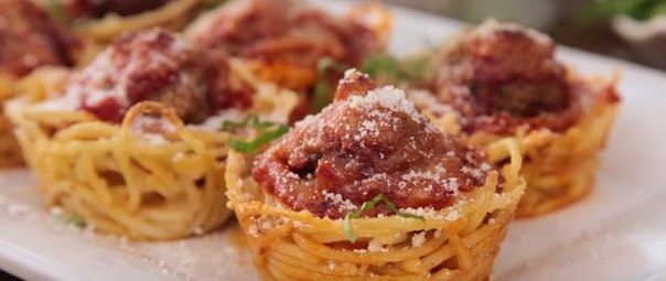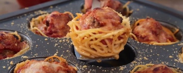 ОНА ПРОСТО ВЫЛОЖИЛА СПАГЕТТИ В ФОРМУ ДЛЯ КЕКСОВ. В РЕЗУЛЬТАТЕ ПОЛУЧИЛОСЬ СУПЕР КРАСИВОЕ БЛЮДО!