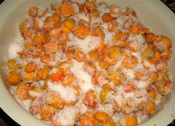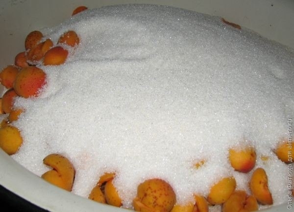 Перемешиваю. Оставляю на несколько часов, чтобы абрикосы пустили сок. В этот раз я оставляла на ночь.