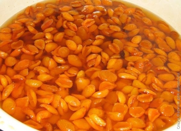 И в третий раз повторяю эту процедуру. Фрукты были чуть зеленоватые, с плотной мякотью, поэтому без особых усилий половинки абрикос остались целыми, не разварились.