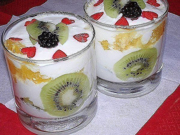 Кладём всё в морозилку на 20 минут. Десерт «Фруктовый» готов!