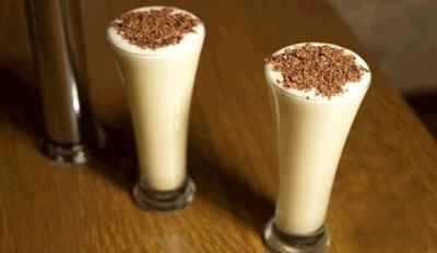 Как готовить: Взбить яичные желтки до тех пор, пока они не посветлеют. Продолжая взбивать, всыпать 1/3 стакана сахара. Взбивать, пока сахар не растворится. Ввести молоко, сливки, ром и мускатный орех и перемешать до однородной консистенции. В другой посуде взбить яичный белки до образования пены. Продолжая взбивать, всыпать 1 столовую ложку сахара. Вылить взбитые белки в молочную смесь, перемешать, охладить перед подачей. Можно посыпать корицей, мускатным орехом или лимонной цедрой.