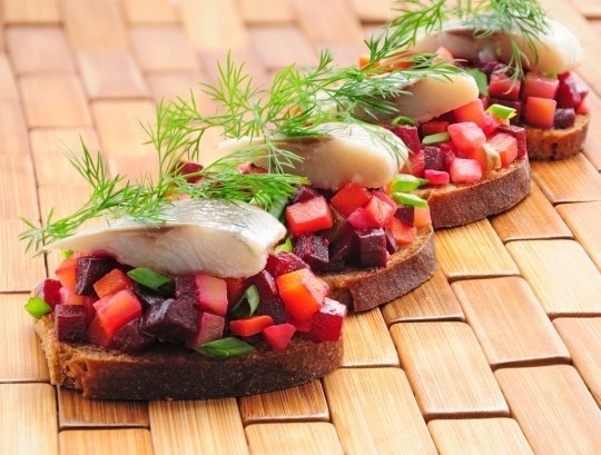 6. В миске соединить вареные овощи, селедку и огурцы.