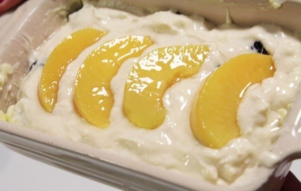 Запеканочка из рикотты с ягодами и персиками