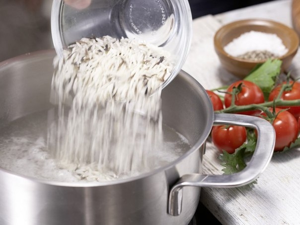 1. Замочите рис в холодной воде на 15–20 минут. Затем воду слейте и варите его в кипящей подсоленной воде в пропорции 1 к 3 в течение 40 минут.