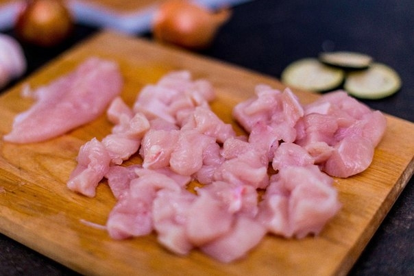 7. Нарезанное филе обжарьте, приправив, до готовности.
