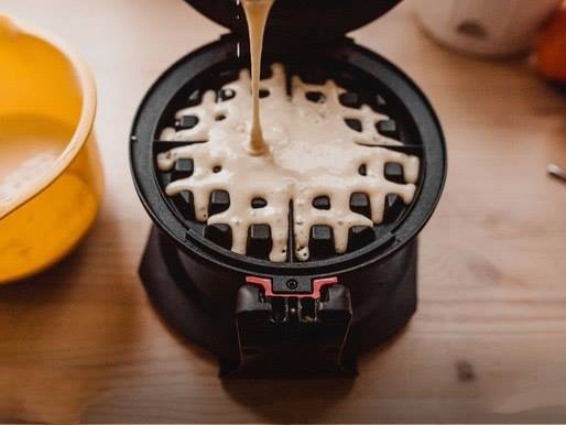 6. Залить порцию теста в вафельницу. Выпекать согласно инструкции. Обычно через 3 минуты вафли готовы! Украшаем их ягодами, а можно и карамельным соусом.