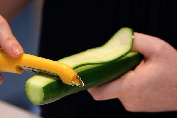 1. С помощью овощечистки нарежьте на тонкие «ленты» цуккини.