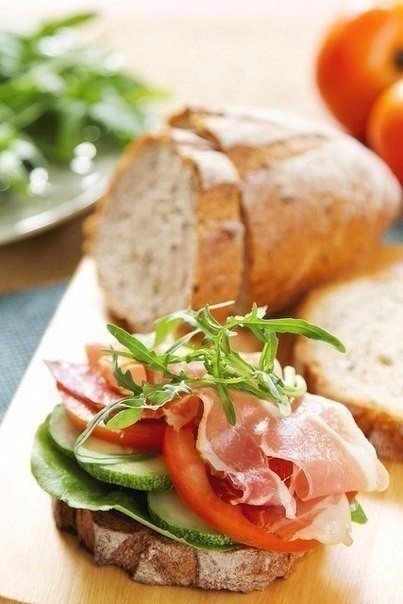 7) Бутерброд с лососем. Рыбу следует приготовить заранее, замариновать лосося в бальзамическом уксусе. Кусочек хлеба с лососем будет вполне уместен и полезен на обед.
