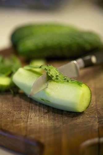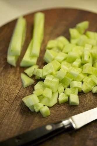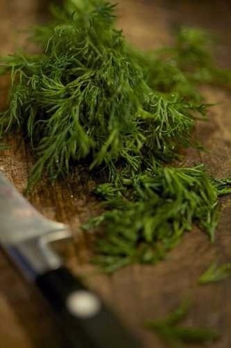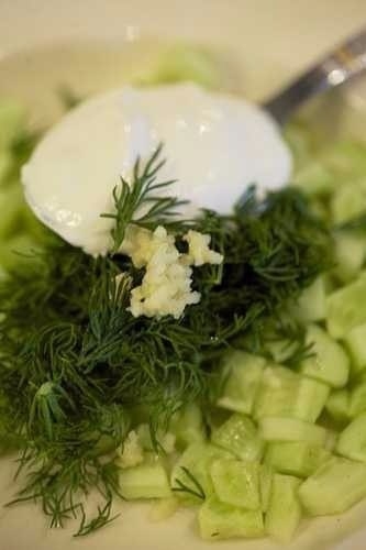 5. Смешиваем огурцы, чеснок, зелень, добавляем сметану и соль по вкусу.