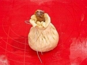13.Края теста собрать и завязать ниткой (сильно туго не завязывать)