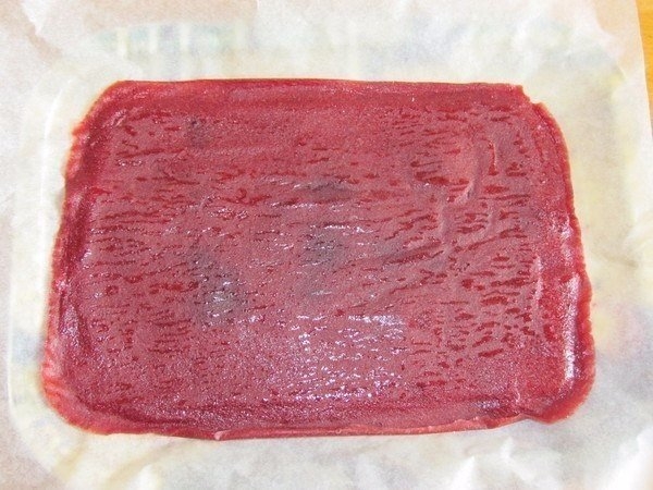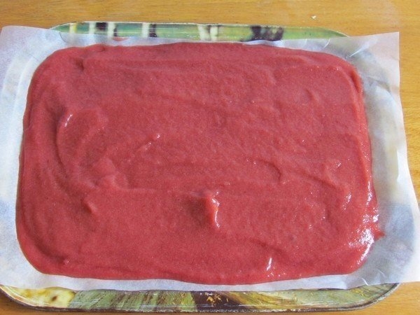 5. Оставьте сохнуть при комнатной температуре приблизительно 3-4 дня. Через пару дней можно перевернуть пласт на другую сторону. Если хотите ускорить процесс высыхания, можно воспользоваться духовкой. Установите температуру на 60-70 градусов и сушите пастилу около 8 часов с приоткрытой дверцей духовки.