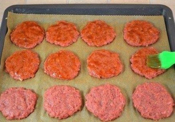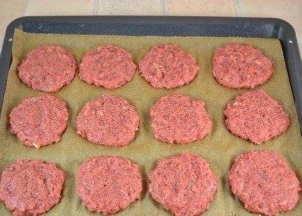 5. Сформировать плоские котлеты (у меня получилось ровно 12 штук) и выложить их на противень.