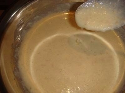 5) Вливаем масло,перемешиваем. Тесто получается не очень густое И жарим блинчики.