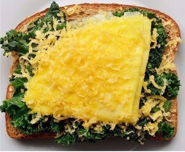 4. Листья салата + яичный омлет + сыр чеддер.