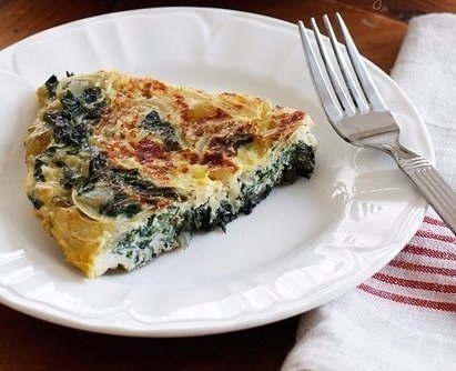 1. На среднем огне слегка обжарьте лук на масле, добавьте шпинат и готовьте под крышкой 3-4 минуты.