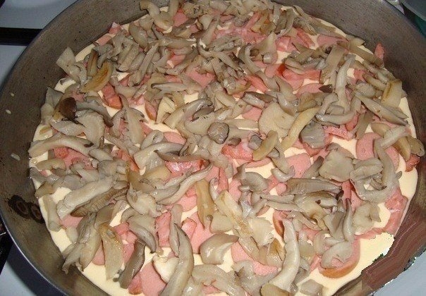 2. Тесто вылить на сковороду и уже сверху положить любую начинку.