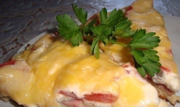 Сковороду сразу накрыть крышкой, как только сыр расплавился, пицца готова.