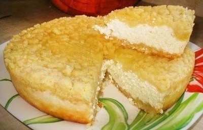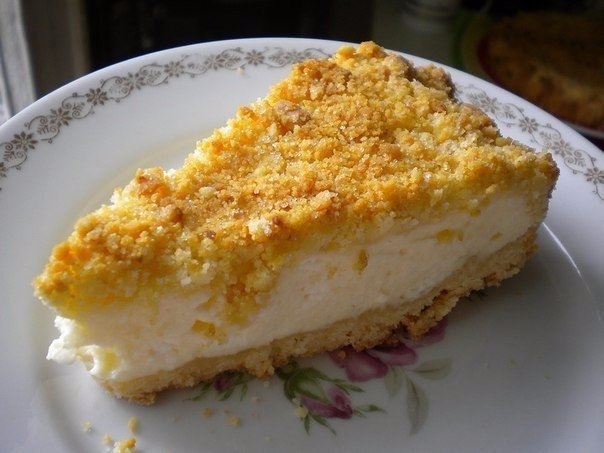 2. Берем форму, смазываем ее маслом и ровным слоем высыпаем половину наших масляно-мучных крошек. Сверху выкладываем творог, разравниваем и засыпаем оставшейся половиной крошек. Духовку прогреваем до 180-200 градусов и ставим нашу ватрушку запекаться минут на 30 (до румяности).