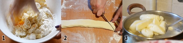 Насыпаем на стол немного муки и вымешиваем тесто формируя из него небольшие колбаски. После чего из каждой колбаски по диагонали нарезаем порционные варенички.
