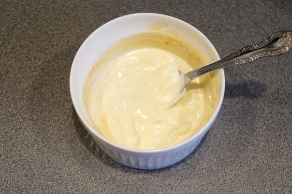 4. Для соуса смешать жидкую сметану, соевый соус и горчицу (я беру не острую). Полить соусом салат.