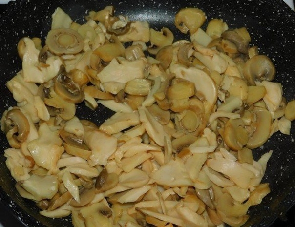 1. Первым делом обжарьте шампиньоны. Остудите.