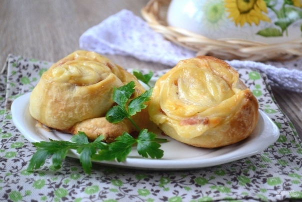 Закусочные булочки с ветчиной и сыром готовы. Кушайте их с удовольствием!