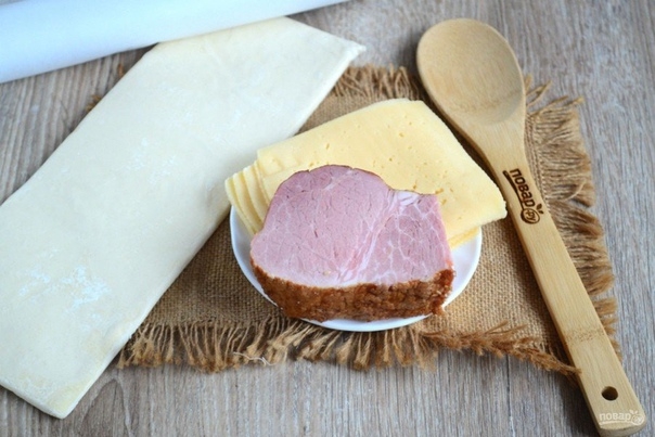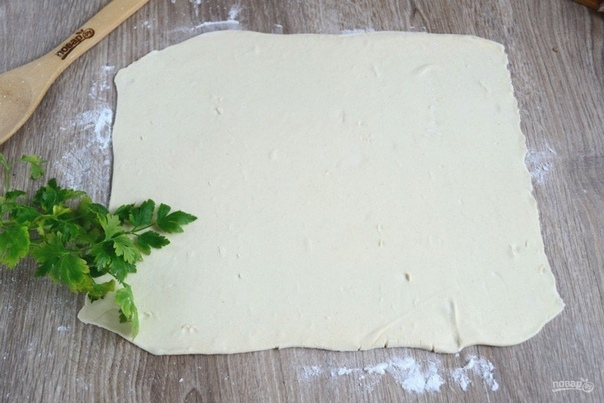 Подготовьте все необходимые ингредиенты. Тесто заранее выньте из морозилки, чтобы оно успело разморозиться, иначе раскатать тонко его будет невозможно.