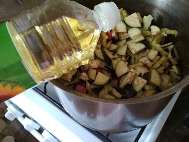 2. Сложить все в кастрюлю, добавить масло, посолить. Добавить приправу. Включить огонь и проварить вместе 20-25 минут.