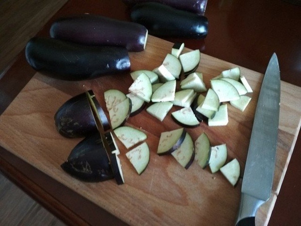 1. Для приготовления икры из баклажанов выбрать крепкие овощи без повреждений. Вымыть их и обсушить. Баклажаны мелко нарезать. Перец нарезать мелкой короткой соломкой. Измельчить помидоры.
