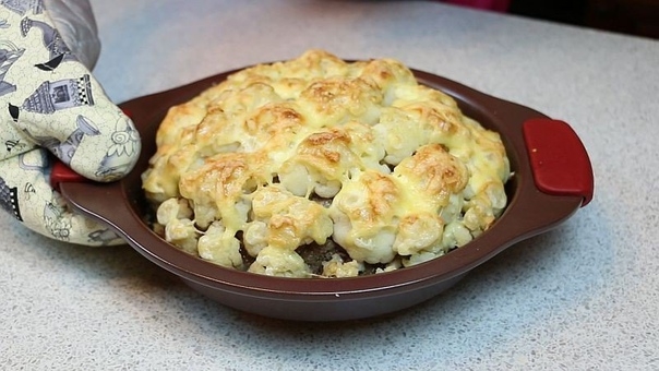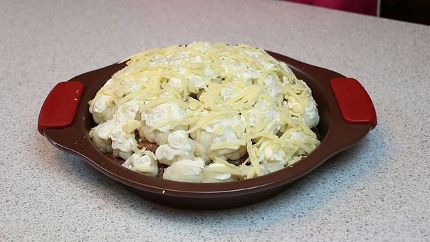 сверху прикрепляем цветную капусту, утапливая её в фарш.