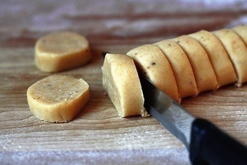 - Сформировать тесто в "колбаску" и порезать на кружки