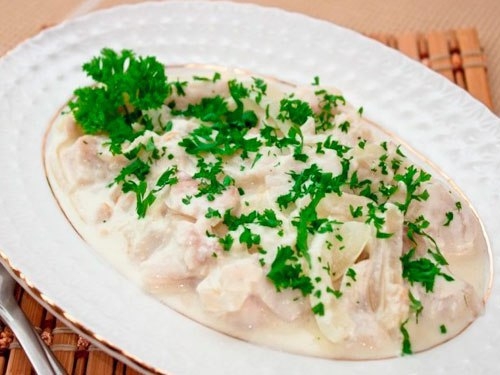 Рыба, тушенная с луком и сметаной
