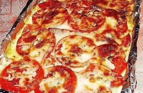 Рыба, запеченная с помидорами и сыром