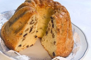 Для аромата в тесто положите ванильный сахар, орехи и промытый, сухой изюм. Тесто выпекайте примерно час в смазанной растительным маслом форме, при температуре 200 градусов.Перед подачей к столу полейте глазурью.