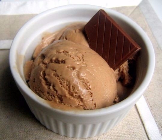 Молоко поставьте на огонь и добавьте в него ванилина, дайте нагреться и доведите до кипения, но не кипятите. Взбейте желтки с сахаром и смешайте с молоком. Грейте эту смесь на молоке, слегка помешивая, до тех пор, пока по консистенции она не станет, как густая сметана. Смесь охладите, добавьте в нее сливок и заморозьте. К готовому мороженому можно добавить тертого шоколада, орехов или фруктов.