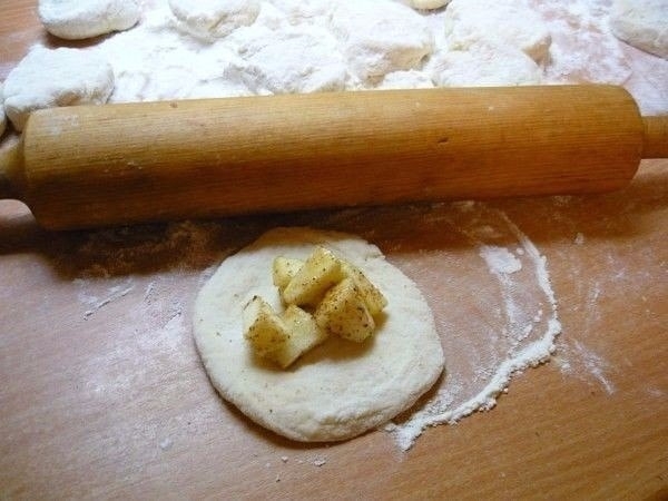 Обминаем их в муке и слегка раскатываем скалкой. Кусочков должно быть четное количество.