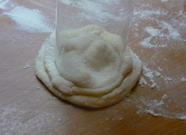 Сверху прикрываем вторым кружком и обрезаем стаканом. Края при этом довольно плотно склеиваются.