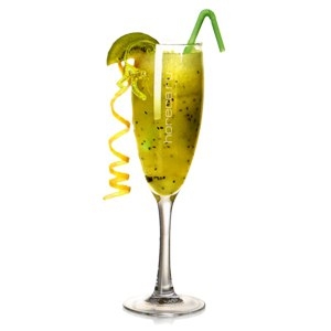 Коктейль можно украсить ломтиком киви или апельсиновой цедрой, его пьют через трубочку.