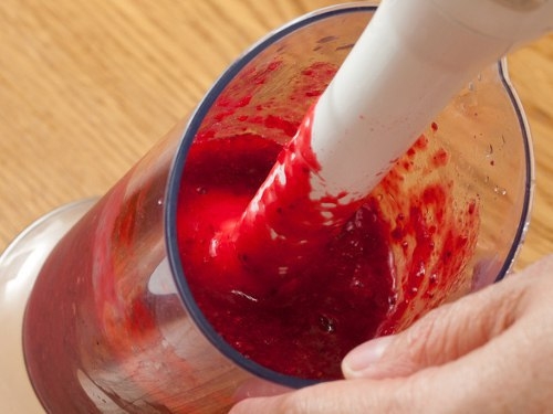 Перебрать и помыть клюкву. Залить небольшим количеством теплой воды (так, чтобы вода покрывала ягоды) и все смешать блендером в однородную массу.